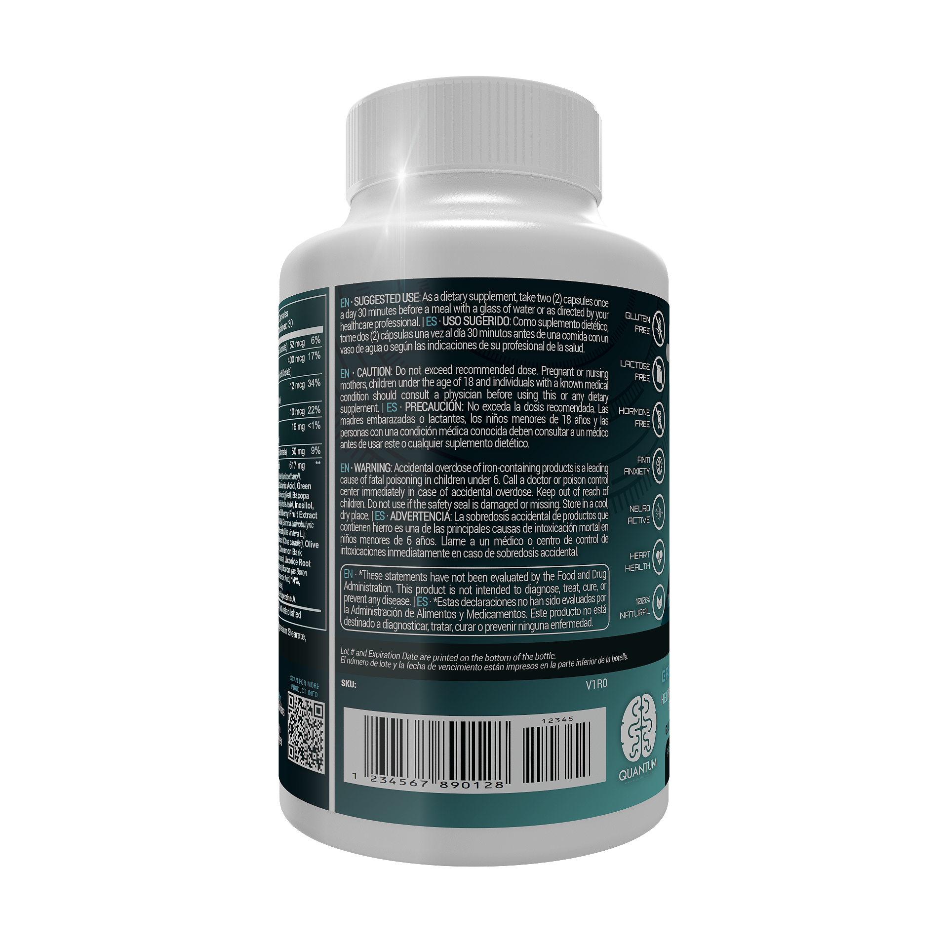 | Product Benefits: | Memory & Cognition, Neuroprotective, Holistic Health, Immunity Boost, Cardiovascular Health, Multivitamin, Seniors, Men & Women's Health, 1 Month Supply |