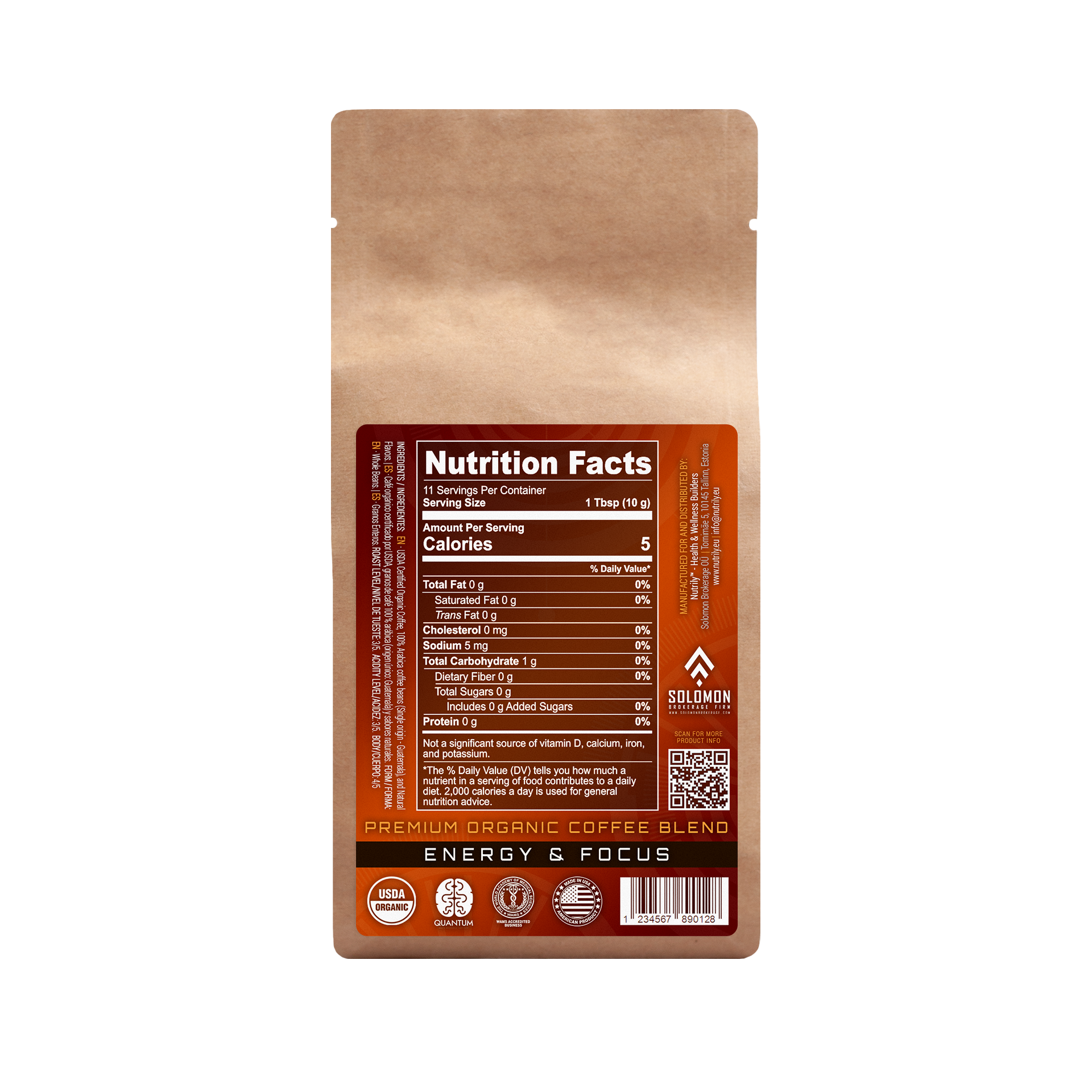 Premium Organic Coffee – Guatemala Sweet Citrus – Tangerine, Peach & Honey Flavor – 4oz – Energy + Anti Stress – Solomon Coffee Blend is a Nutrily™ premium organic medium-dark roast coffee blend in the form of whole coffee beans that helps improve memory, fosters brain health, enhances athletic performance, and boosts energy with its beneficial natural properties. It has a rich antioxidant natural blend with authentic single-origin organic coffee from Guatemala that has additional antibacterial, antiviral, antioxidant, and anti-inflammatory benefits that protect cells from damage. It’s a 100% organic and drug-free nutritional food based on a holistic health approach.