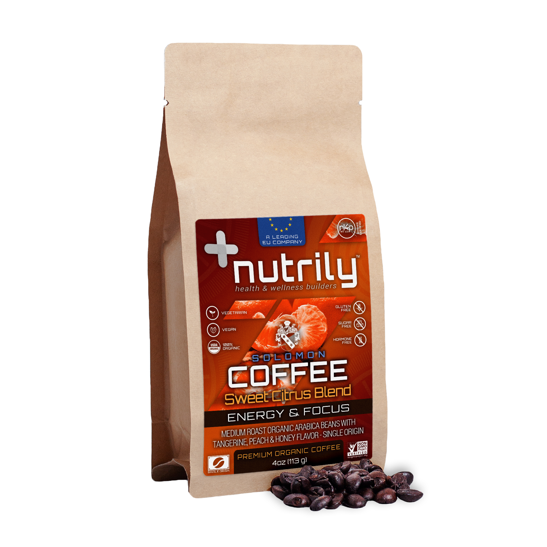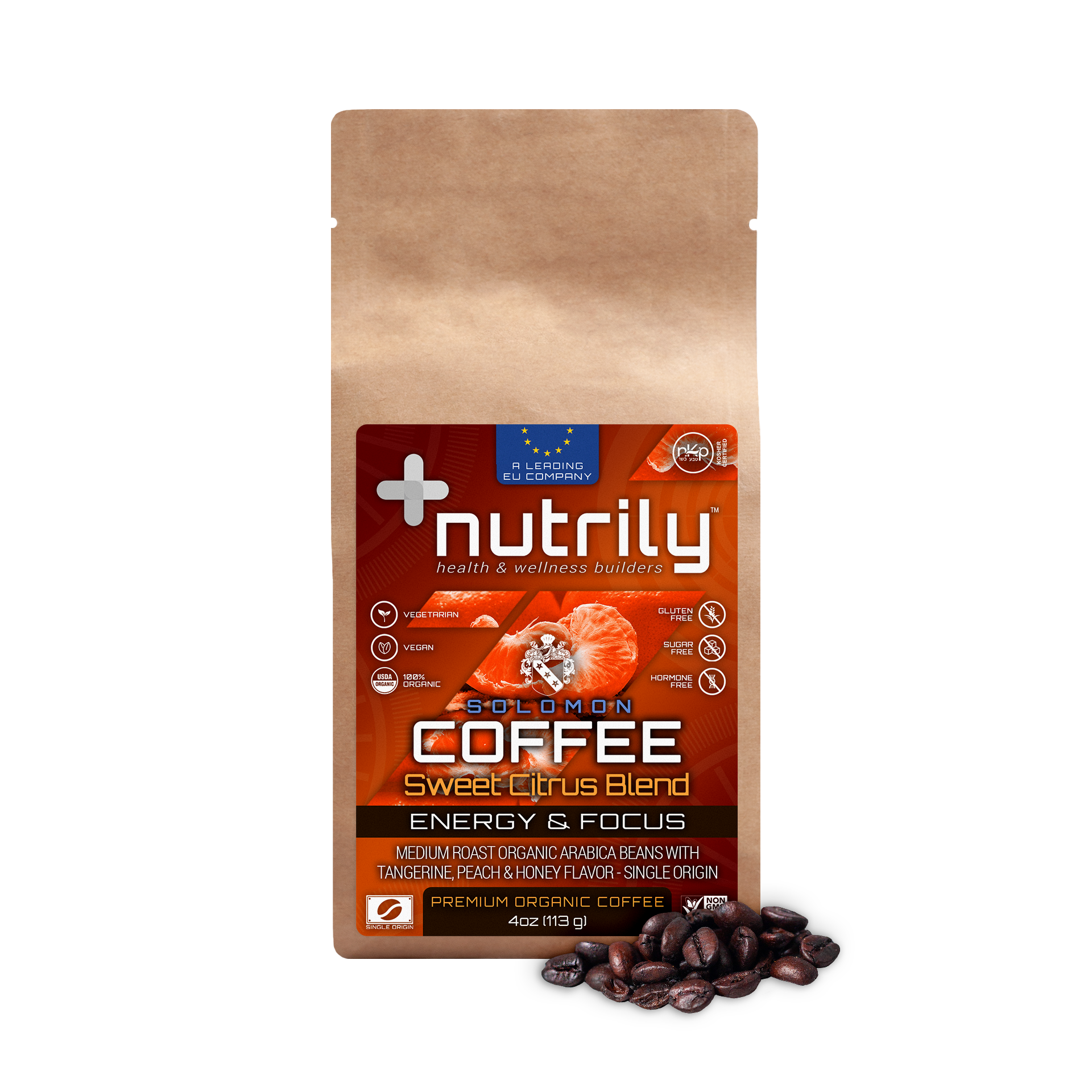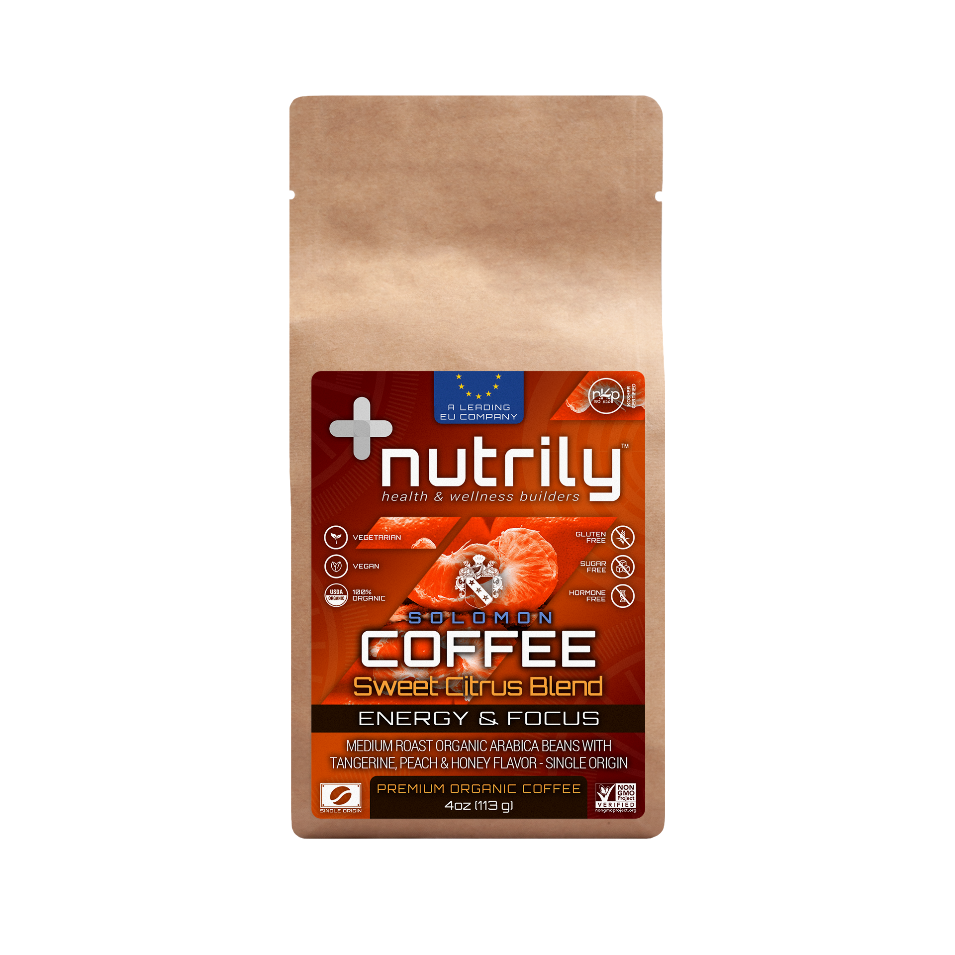 Premium Organic Coffee – Guatemala Sweet Citrus – Tangerine, Peach & Honey Flavor – 4oz – Energy + Anti Stress – Solomon Coffee Blend is a Nutrily™ premium organic medium-dark roast coffee blend in the form of whole coffee beans that helps improve memory, fosters brain health, enhances athletic performance, and boosts energy with its beneficial natural properties. It has a rich antioxidant natural blend with authentic organic coffee from Guatemala that has additional antibacterial, antiviral, antioxidant, and anti-inflammatory benefits that protect cells from damage. It’s a 100% organic and drug-free nutritional food based on a holistic health approach.