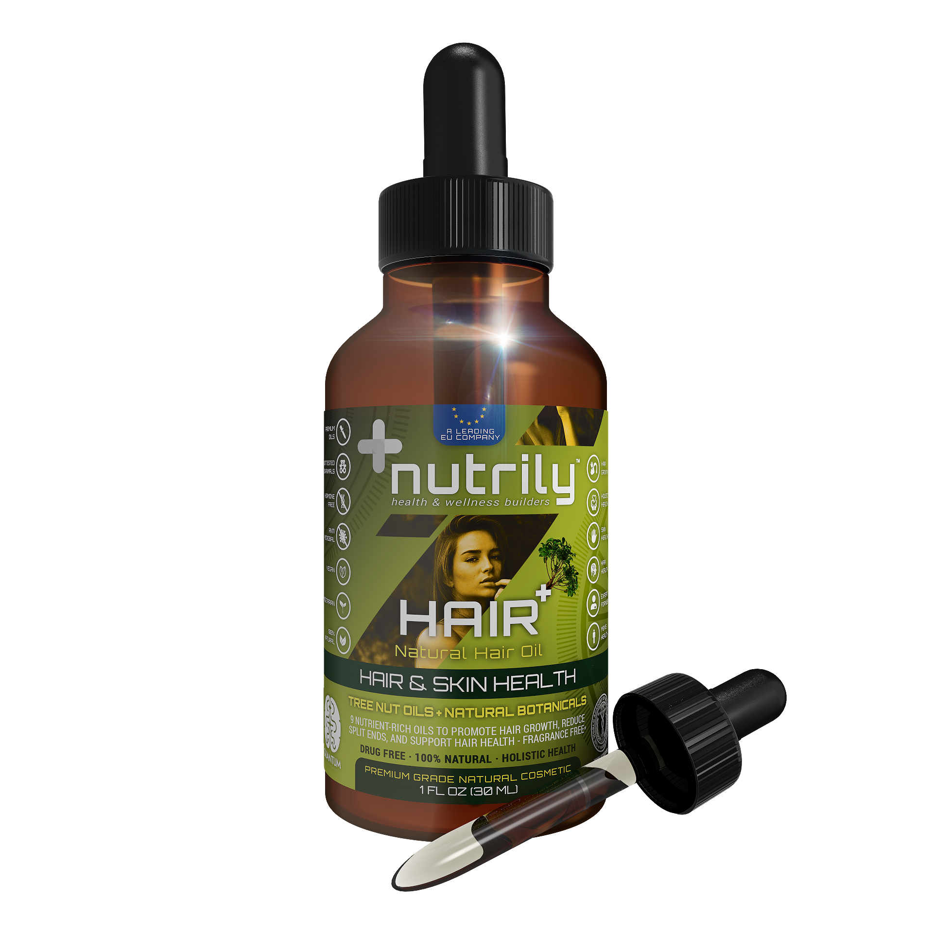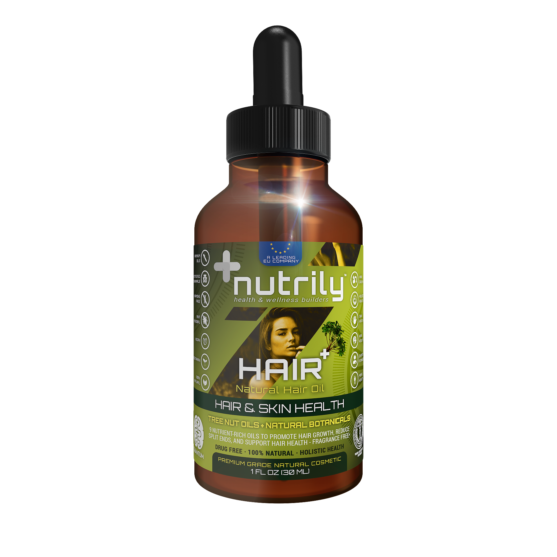 Hair+ Natural Hair Oil – Hair Growth & Hair Health – Tree Nut Oils + Natural Botanicals – Fragrance Free is a Nutrily™ natural cosmetic that helps amplify hair growth, reduce slipt ends, and supports skin & hair health with its beneficial properties. It has a rich natural formula with 9 nutrient-rich oils including Tree Nut Oils & Natural Botanicals. It’s a 100% natural and drug-free hair & skin nutrition cosmetic based on a holistic health approach.