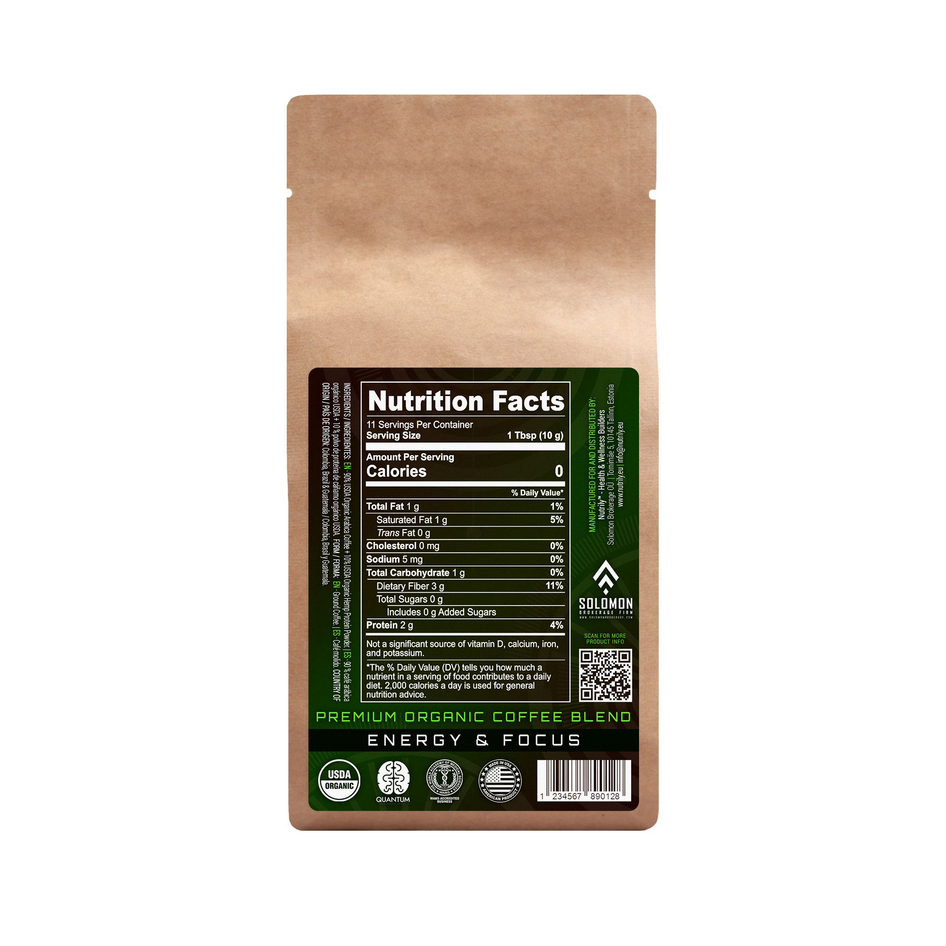Premium Organic Coffee – Organic Hemp Fusion – Nuts Flavor – 4oz – Hemp Protein – Memory + Energy – Solomon Coffee Blend offers an energetic organic coffee blend that: